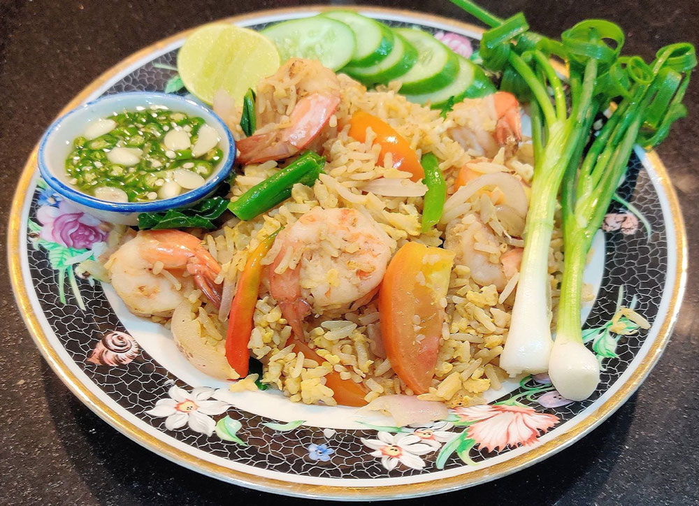 Le Khao Pad se déguste traditionnellement accompagné d’une sauce piquante maison : de la sauce de poisson avec des petits morceaux de piments oiseaux, idéal pour relever le goût. Vous pouvez aussi essayer les variantes populaires telles que le Khao Pad Sapparod (riz sauté à l’ananas) ou le Khao Pad Poo aux délicieux morceaux de crabe.